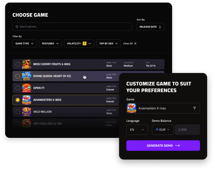Benefit from high-performance integration. Use SEO-friendly embed codes and personalized game links to turn visitors into loyal players.