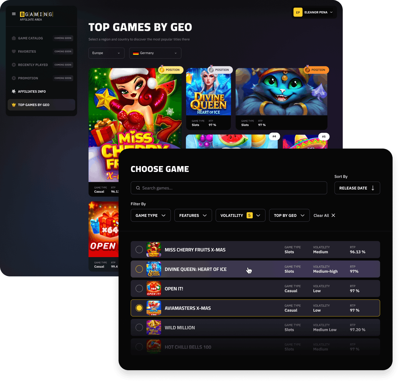 An ultimate platform designed specifically for iGaming affiliates. Create custom demos, track live trends, and grab high-converting creatives — all for free.